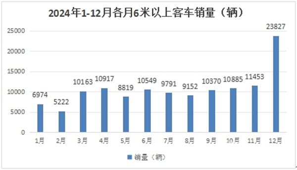 可见,2024年12月我国6米以上客车销量呈现同环比“双大增”。