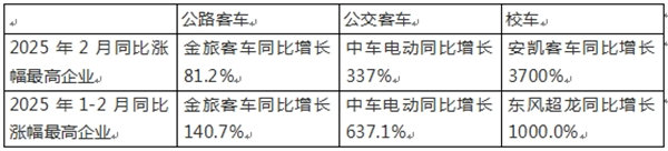 总之,在2025年2月公路、公交和校车三大客车细分市场中,公交表现最抢眼;前2月校车领涨,表现最“给力”;而公路客车在2月及前2月均处于领跑地位。