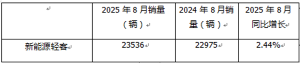 表1,2025年8月新能源轻客同比增长2.44%(数据来源:终端上牌信息)