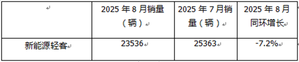表2,2025年8月新能源轻客环比下降7.2%(数据来源:终端上牌信息)