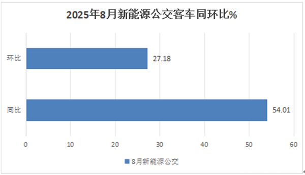 根据中国客车统计信息网数据,2025年8月客车企业实现7米以上新能源公交客车销售3439辆,环比增长27.18%,同比增长54.01%,可见今年8月新能源公交客车市场呈现了同环比均增长的良好发展趋势;