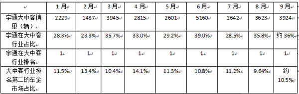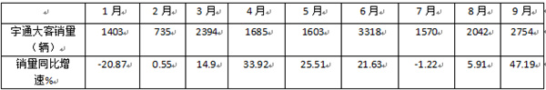 下面笔者从市场销量层面来简要分析一下宇通客车今年9月的主要销量特点。