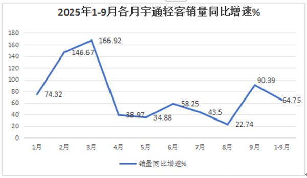特别值得一提的是,2025年1-9月宇通轻客同比增速均为正,且增速均较高(最低的是8月的22.94%、最高的是3月的166.92%),可谓“一路狂飙”,因此成为2025年前9月宇通客车销量的一个非常重要的新增长点,也成为宇通客车今年以来细分市场的一个很大亮点。