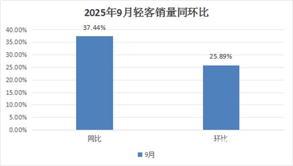 根据中汽协数据,2025年9月轻客销量4.3644万辆,同比增长37.44%、环比增长25.89%,呈现了同环比“双增”的发展态势。
