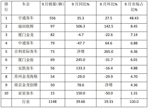 三是9月旅游旺季来临,部分景区对新能源座位客车需求增加。