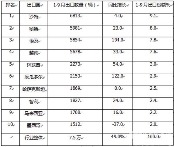 ---出口到其余国家数量均在3000辆以下,市场占比均小于等于3%;