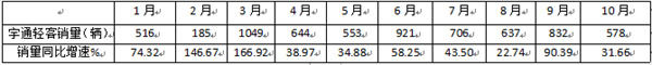 值得关注的是,从今年10月细分车型销量表现来看,在整体调整态势下,宇通大型和轻型客车表现亮眼,当月销量分别为1495辆和578辆,同比增速分别达到13.17%和31.66%。