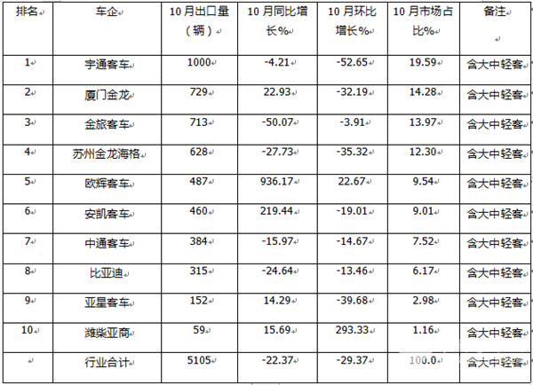 那么2025年10月我国客车出口企业排行如何?