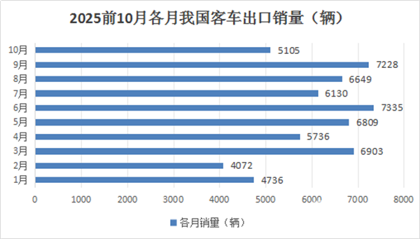根据中国客车统计信息网数据,2025年1-10月各月我国客车出口数量: