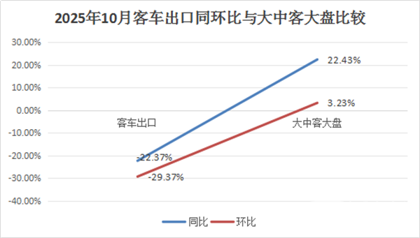 总之,2025年10月我国客车出口同环比均跑输、2025年前10月同比却跑赢大中客车大盘。
