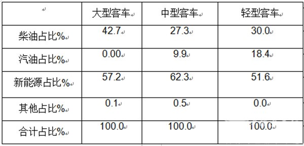 表5、据终端数据统计,2025年1-10月,按搭载动力燃料划分客大中轻客车占比结构:
