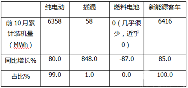 二、10月及前10月新能源客车动力电池装机量整体情况简析