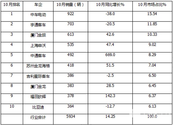 表4,根据中国客车统计信息数据,2025年1-10月新能源公交客车销量top10及市场份额: