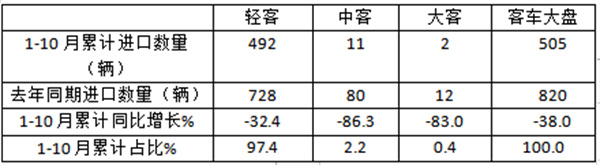 ---中客累计进口11辆,同比下降86.3%,跑输且领跌客车进口大盘,市场占比2.2%,居第二;