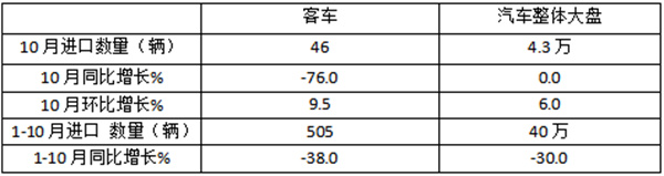 截图2,2025年10月及前10月我国客车进口数量(数据来源:中国汽车流通协会)
